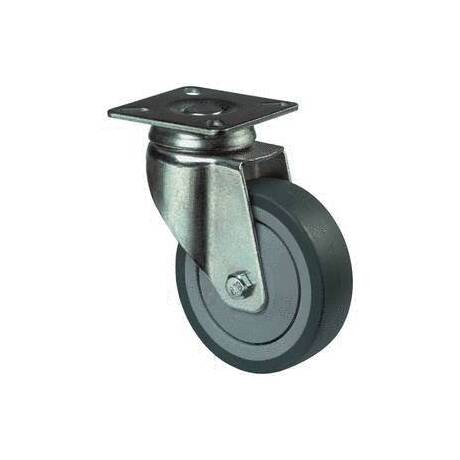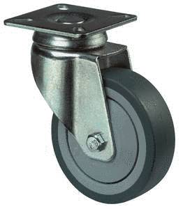 vidlice: ocelový pozinkovaný plech s dvojitým kuličkovým věncem, kolo: plastové s šedou nešpinící gumou na kuličkovém ložisku
