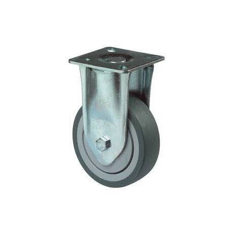 vidlice: ocelový pozinkovaný plech s dvojitým kuličkovým věncem, kolo: plastové s šedou nešpinící gumou na kuličkovém ložisku