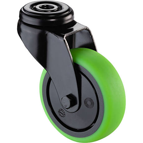 Přístrojové kolečko pryžovým nešpinícím běhounem v otočné vidlici s uchycením na jeden šroub