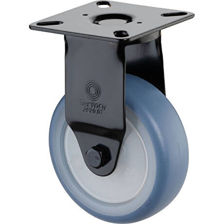 Přístrojové kolečko pryžovým nešpinícím běhounem v pevné vidlici s uchycením na plotnu na čtyři šrouby