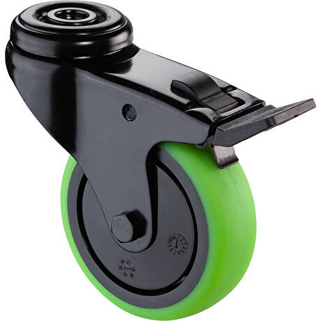 Přístrojové kolečko pryžovým nešpinícím běhounem v otočné vidlici s brzdou s uchycením na jeden šroub