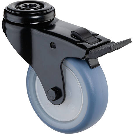 Přístrojové kolečko pryžovým nešpinícím běhounem v otočné vidlici s brzdou s uchycením na jeden šroub