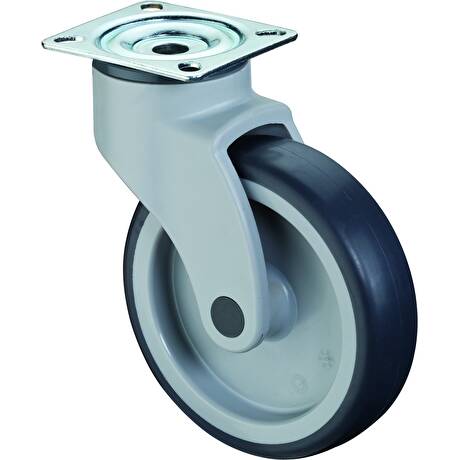 vidlice: plastová s dvojitým kuličkovým věncem, kolo: plastové s šedou nešpinící gumou na kluzném ložisku