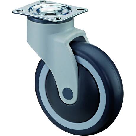 vidlice: plastová s dvojitým kuličkovým věncem, kolo: plastové s šedou nešpinící gumou na kuličkovém ložisku