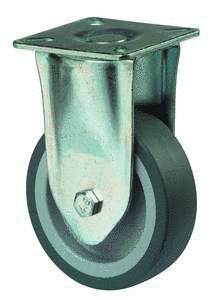 vidlice: ocelový pozinkovaný plech s dvojitým kuličkovým věncem, kolo: plastové s šedou nešpinící gumou na kluzném ložisku