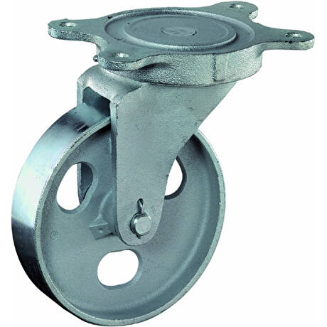 Zátěžové litinové kolo v otočné litinové vidlici s uchycením na plotnu na čtyři šrouby