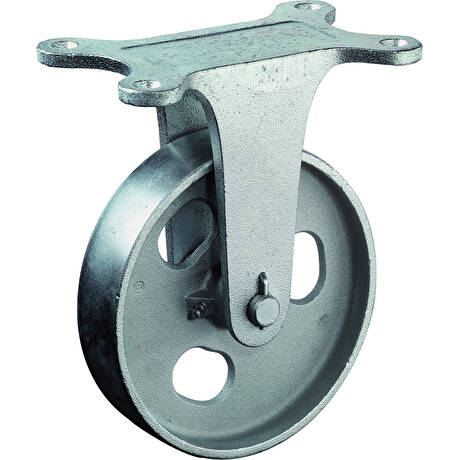 Zátěžové litinové kolo v pevné litinové vidlici s uchycením na plotnu na čtyři šrouby