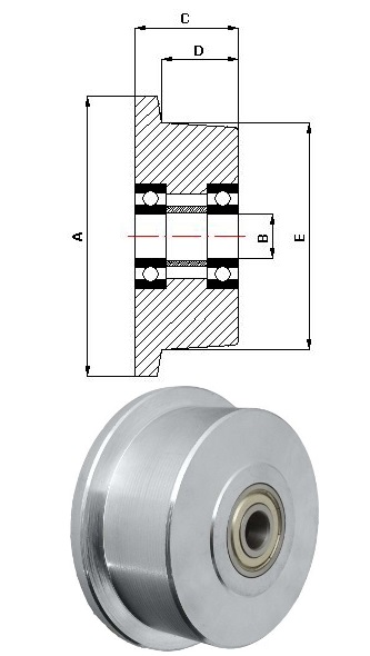 | Název | Průměr kola [mm] | Velikost desky [mm] | Rozteč otvorů [mm] | Průměr otvoru [mm] | Stavební výška [mm] | Zatížení [kg] | D [mm] | B [mm] | A [mm] | C [mm] | E [mm] | Cena [bez DPH] | |