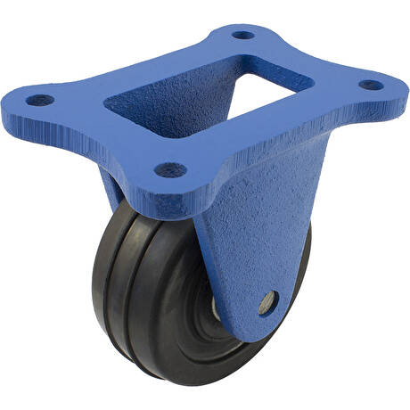 Kolo s černým pryžovým běhounem v pevné litinové vidlici s uchycením na čtyři šrouby