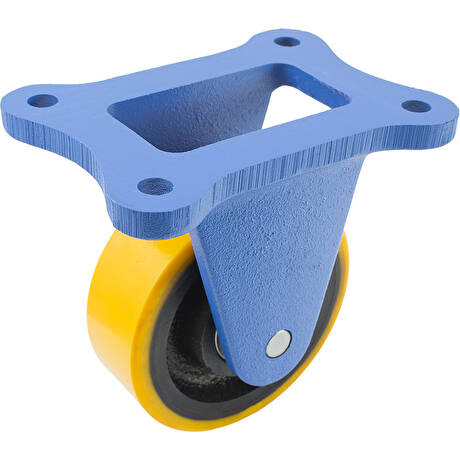 Kolo s polyuretanovým běhounem a litinovým diskem v pevné litinové vidlici s uchycením na čtyři šrouby