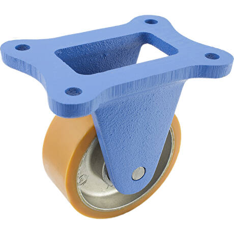 Kolo s polyuretanovým běhounem a hliníkovým diskem v pevné litinové vidlici s uchycením na čtyři šrouby