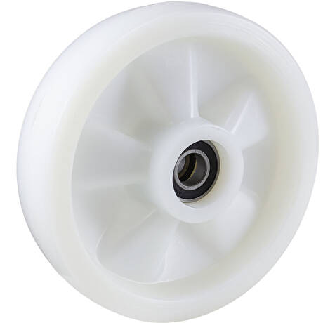 - kolo - bílý polyamid, odolné vůči teplotám -30 až +80 °C, 2x kuličkové ložisko - dvoustranně zapuštěné (12+12mm) pro použití na paletových vozících opatřených krátkou hřídelí