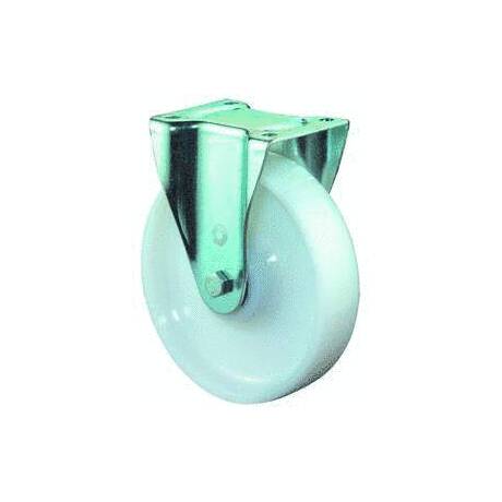 vidlice: ocelový pozinkovaný plech s dvojitým kuličkovým věncem, kolo: bílý polyamid na kuličkovém ložisku