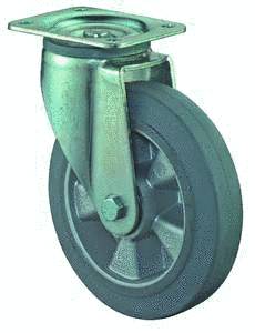 vidlice: ocelový pozinkovaný plech s dvojitým kuličkovým věncem, kolo: hliníkové s šedou nešpinící gumou na kuličkovém ložisku