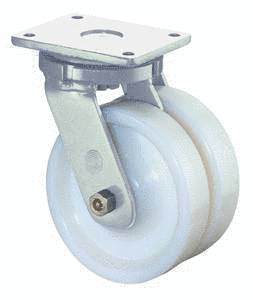 vidlice: ocelový pozinkovaný masivní svařenec s dvojitým kuličkovým věncem, kolo: bílý polyamid na kuličkovém ložisku
