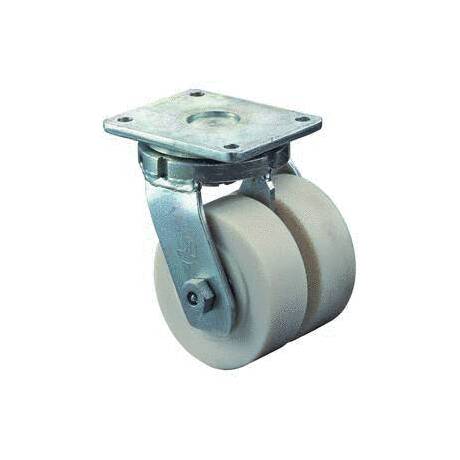 vidlice: ocelový pozinkovaný masivní svařenec s dvojitým kuličkovým věncem, kolo: litý bílý polyamid na kuličkovém ložisku