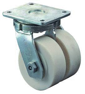 vidlice: ocelový pozinkovaný masivní svařenec s dvojitým kuličkovým věncem, kolo: litý bílý polyamid na kuličkovém ložisku