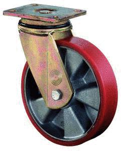 vidlice: ocelový pozinkovaný masivní svařenec s dvojitým kuličkovým věncem, kolo: hliník s polyuretanovým běhounem Shore A 92 na kuličkovém ložisku