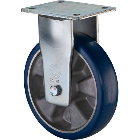 Těžkotonážní kolo série B92 s polyuretanovým běhounem ve vysokozátěžové pevné svařované vidlici s uchycením na plotnu na čtyři šrouby