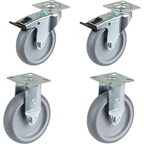 DŮM KOLEČEK » Přístrojová kolečka » Přístrojová kolečka A80 » Sada přístrojový kol A80.100 - otočné provedení s brzdou a pevné za ZVÝHODNĚNOU CENU