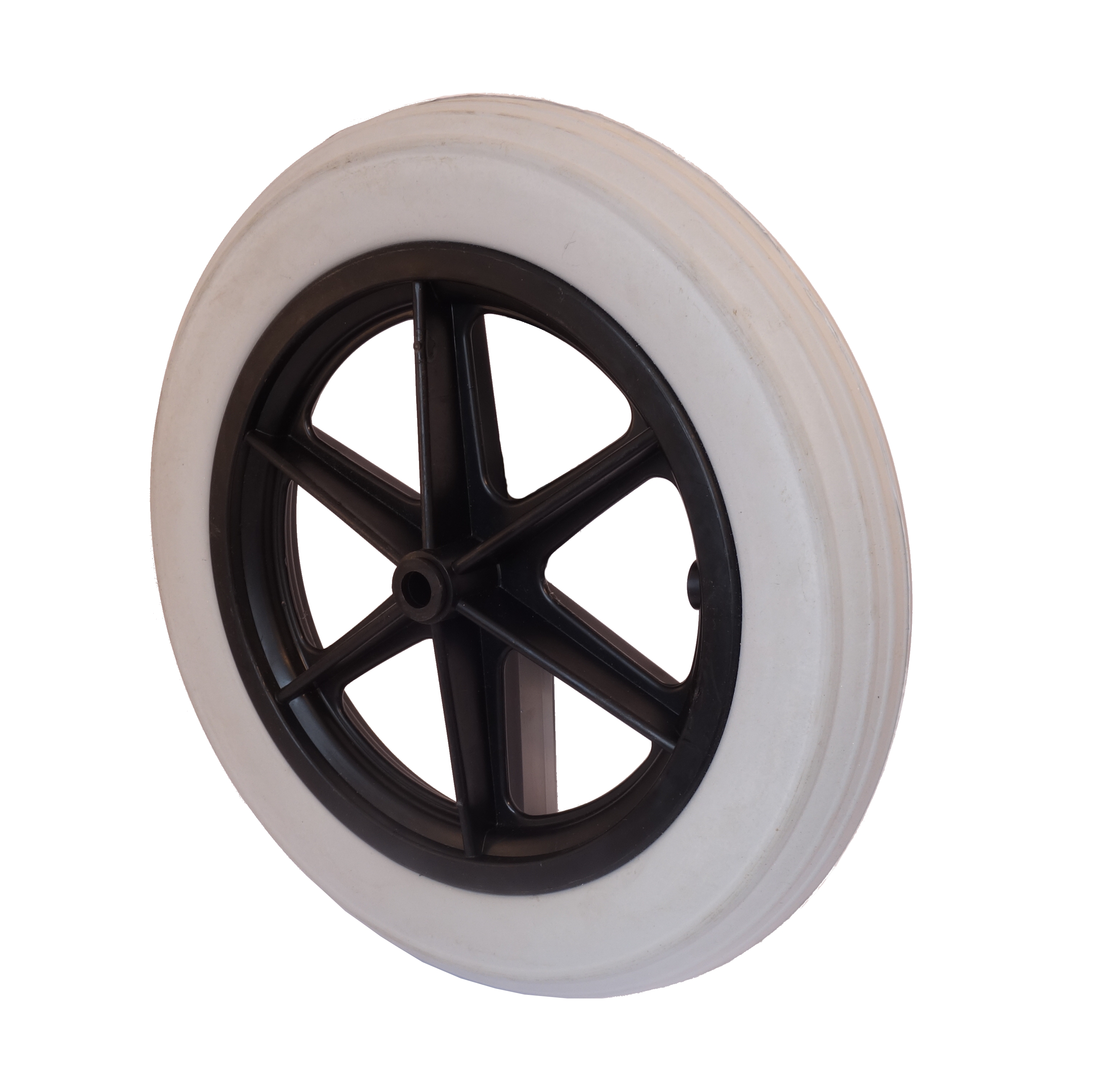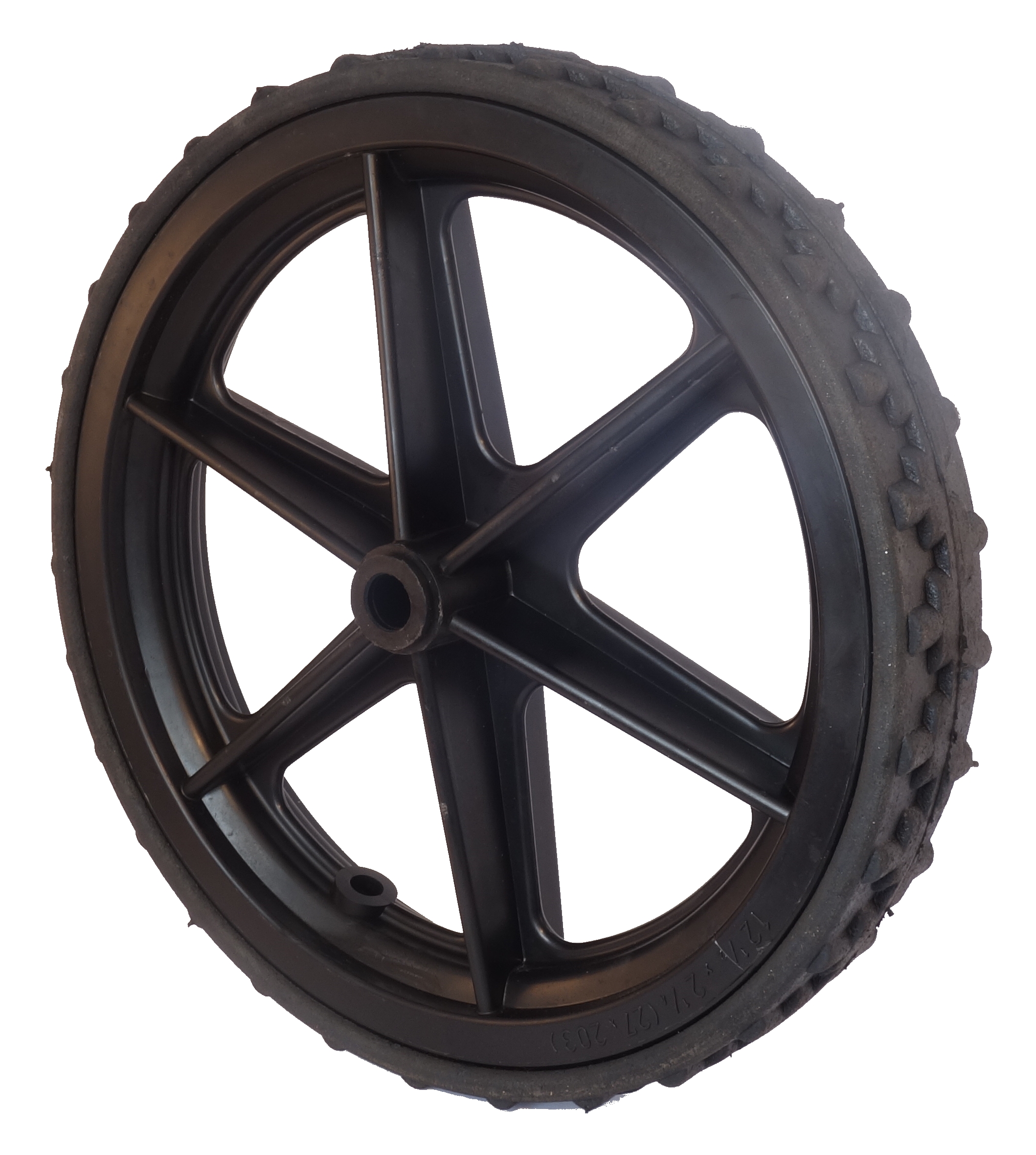 - kolo - disk kola - plast, běhoun - pryžová nebo polyuretanová obruč, kluzné ložisko