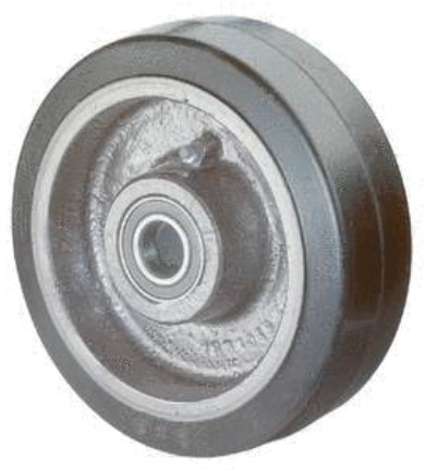 - disk kola - litina, běhoun - černá elastická pryž, tvrdost 75 +/- 5 Sh, odolné vůči teplotám -20 až +70 °C, kuličkové ložisko