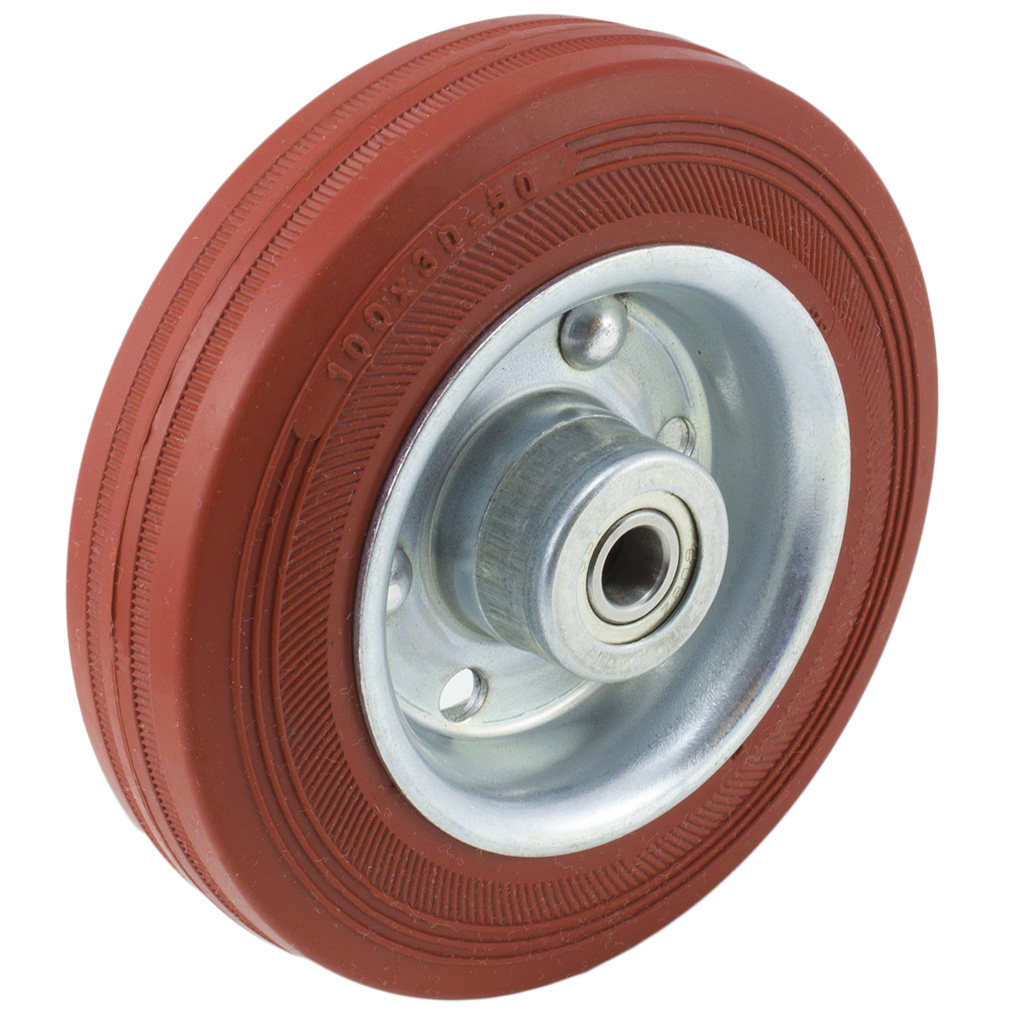 - kolo AT - plechový disk, běhoun červená pryž, odolné vůči teplotám +250 °C, kuličkové ložisko