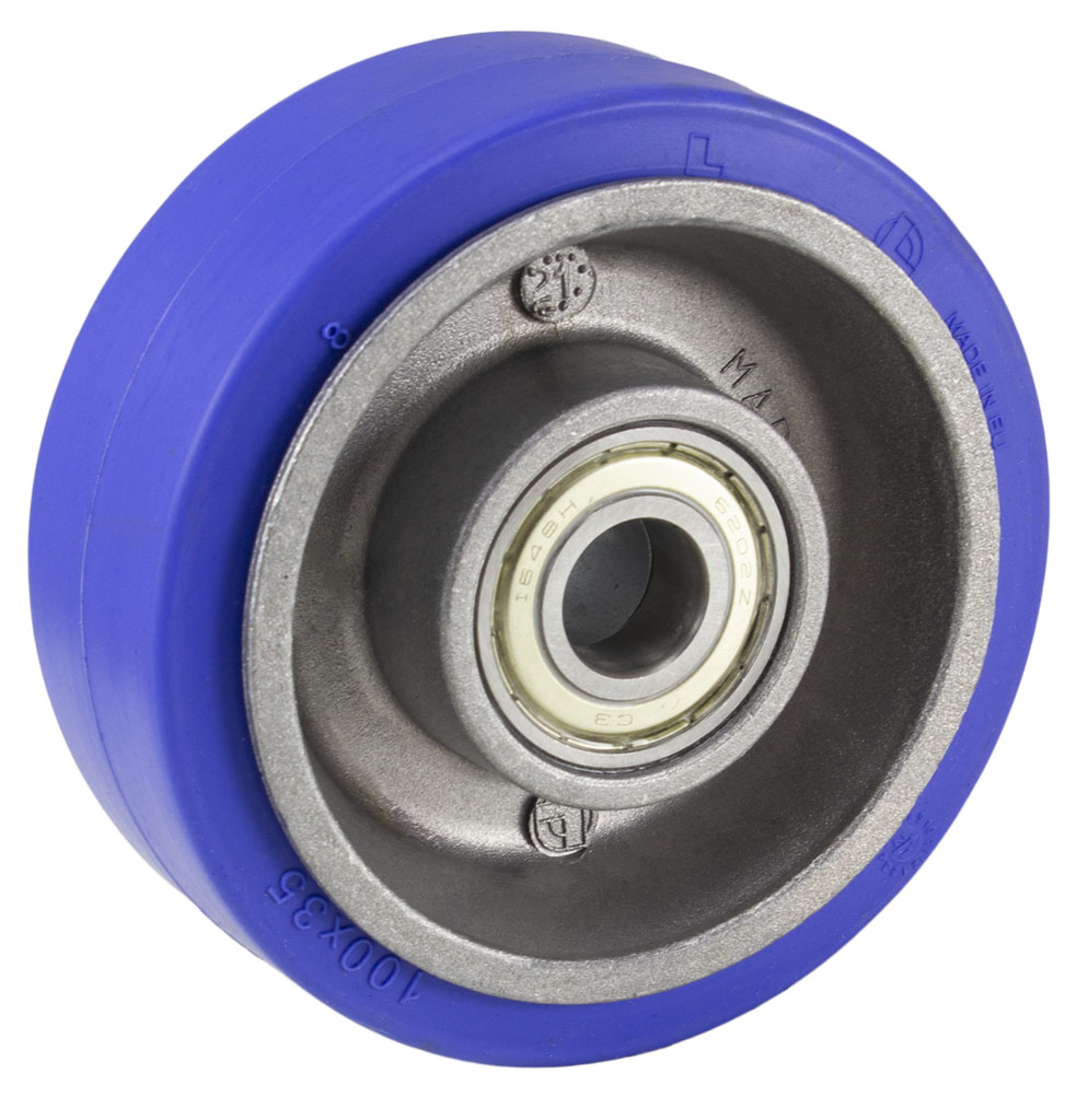 - kolo B24 - disk hliník, běhoun modrá nešpinící pryž, odolné vůči teplotám +250 °C, kuličkové ložisko
