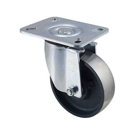 Těžkotonážní litinové kolo v zesílené otočné vidlici s kuličkovými ložisky vhodné pro použití ve vysokých teplotách