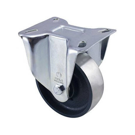 Těžkotonážní litinové kolo v zesílené pevné vidlici s kuličkovými ložisky vhodné pro použití ve vysokých teplotách