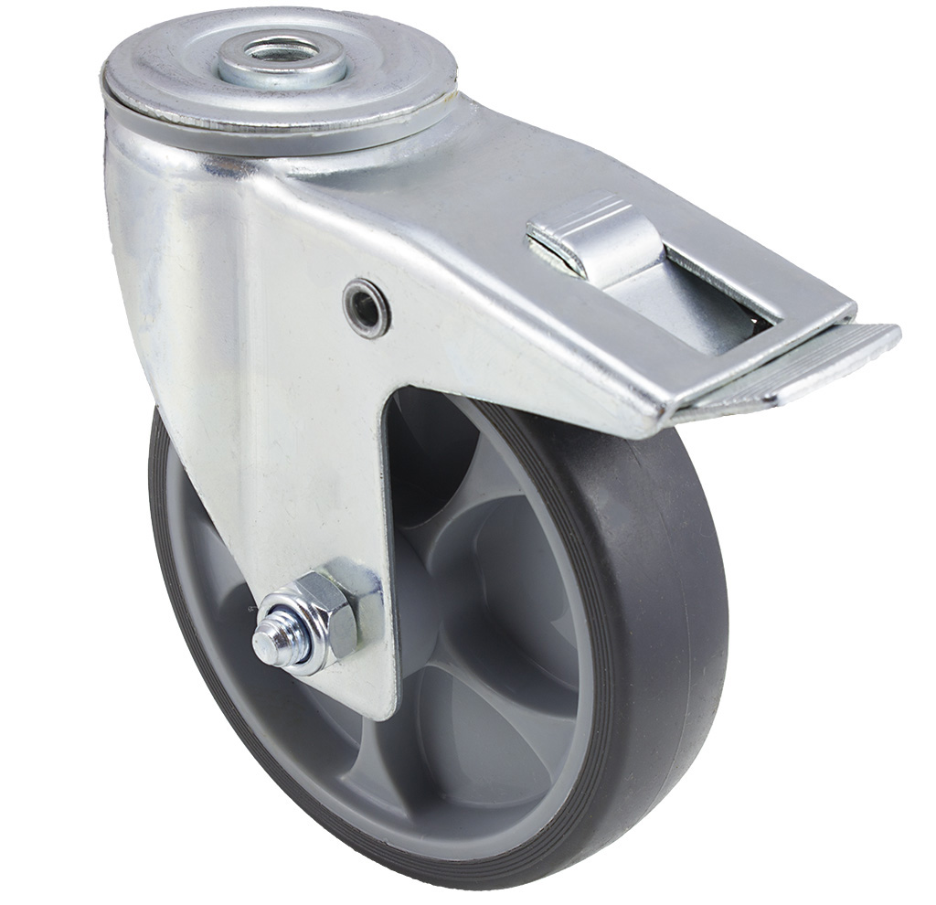 DŮM KOLEČEK » Transportní kola » Transportní kola A85 » Otočné provedení + brzda s uchycením na jeden šroub - kuličkové ložisko