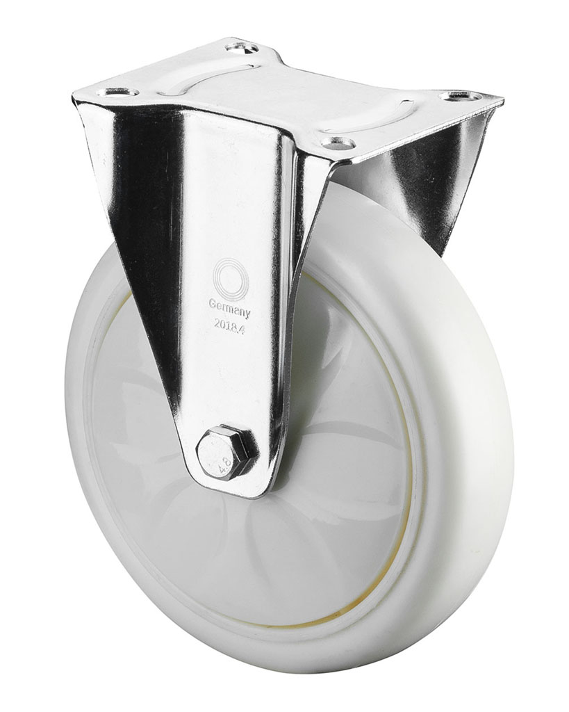 Transportní plastové kolo v pevné vidlici s uchycením na plotnu na čtyři šrouby
