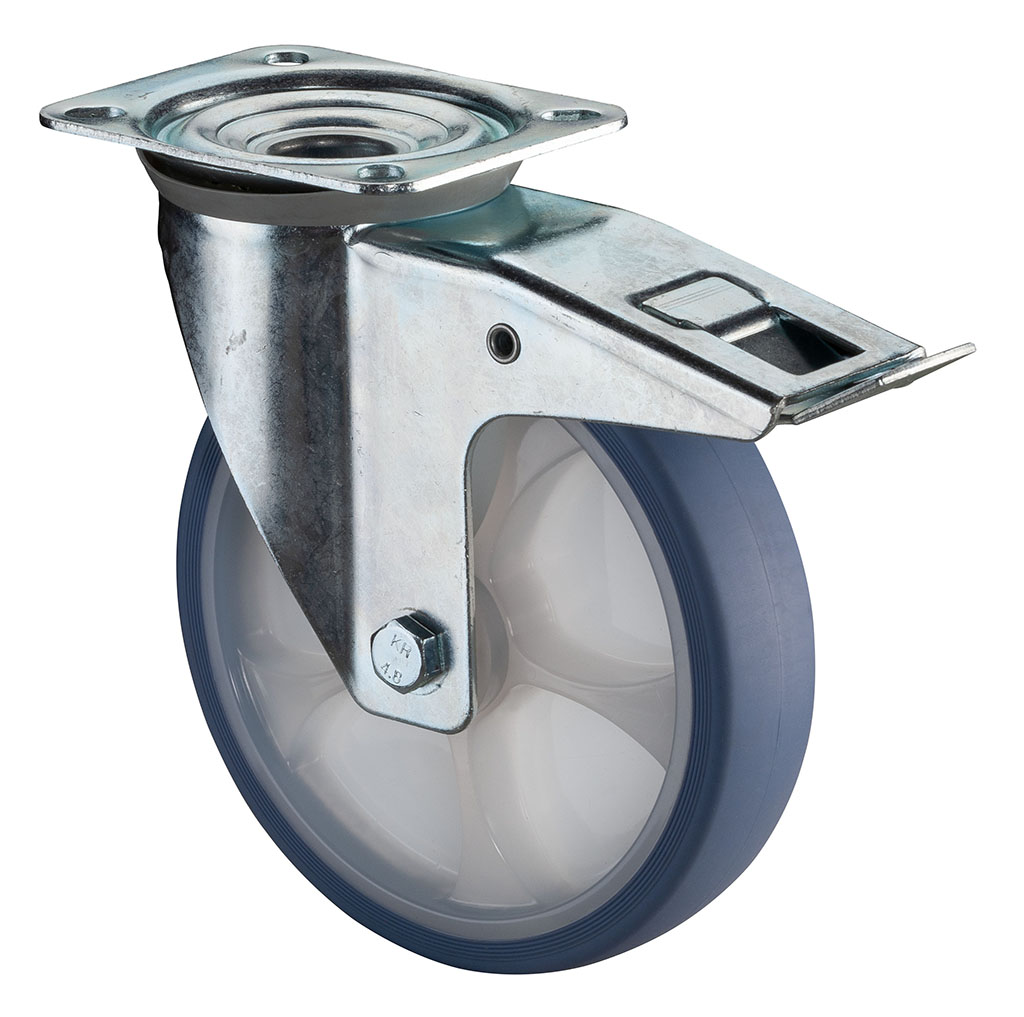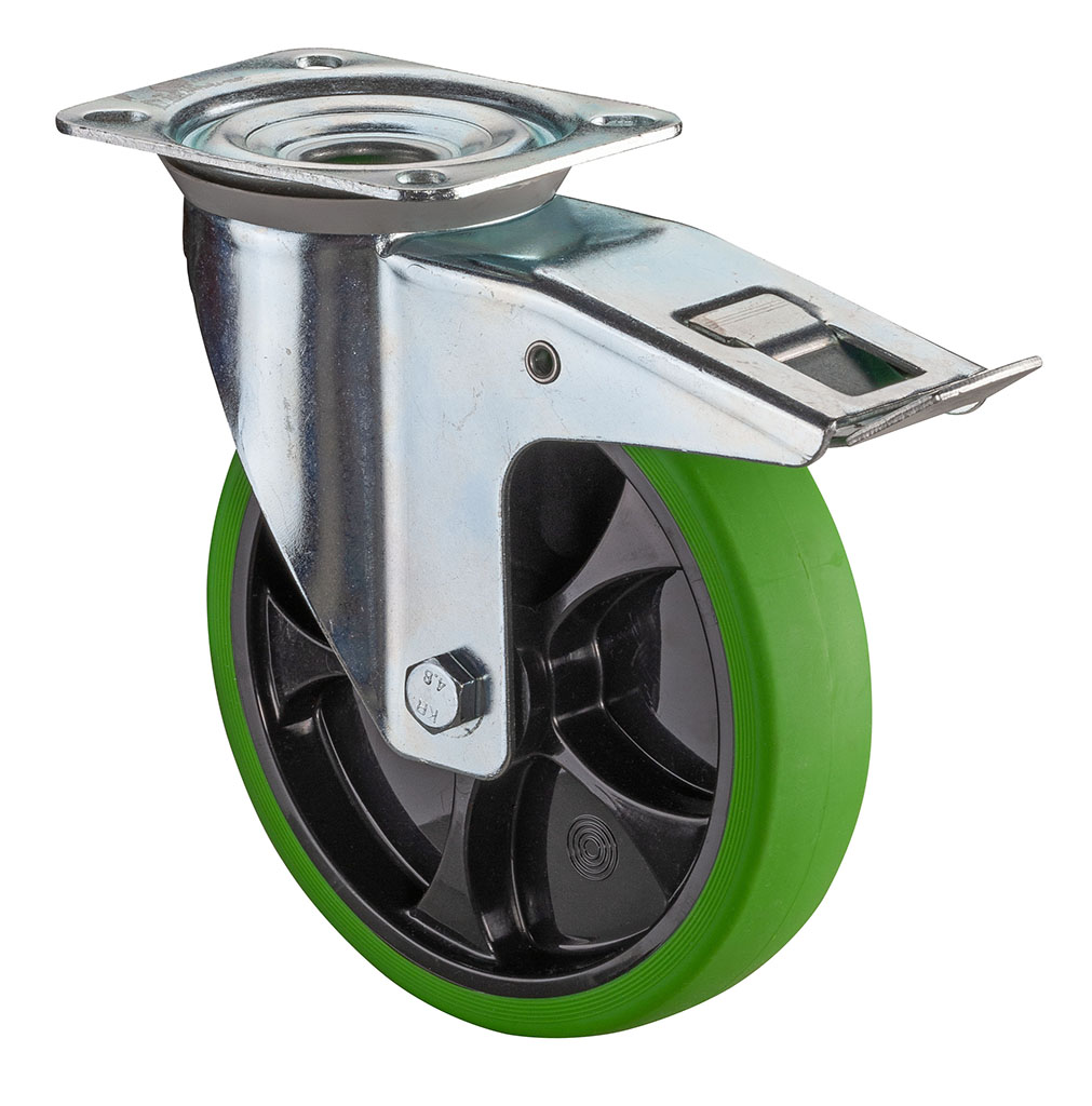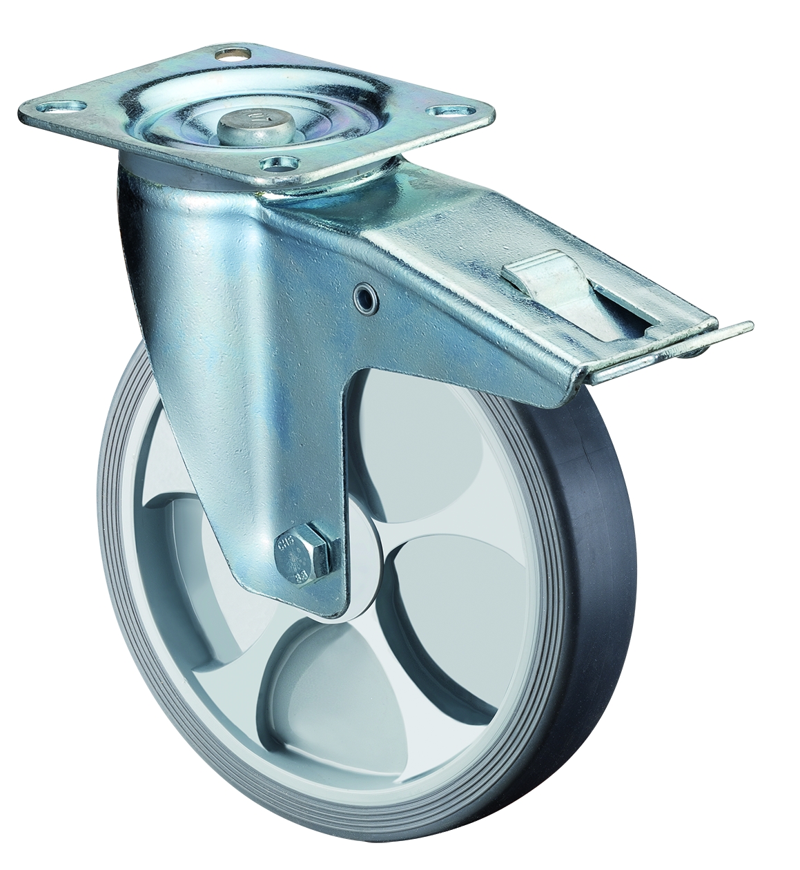 DŮM KOLEČEK » Transportní kola » Transportní kola B44 » Otočné provedení + brzda s uchycením na čtyři šrouby - jehlové ložisko