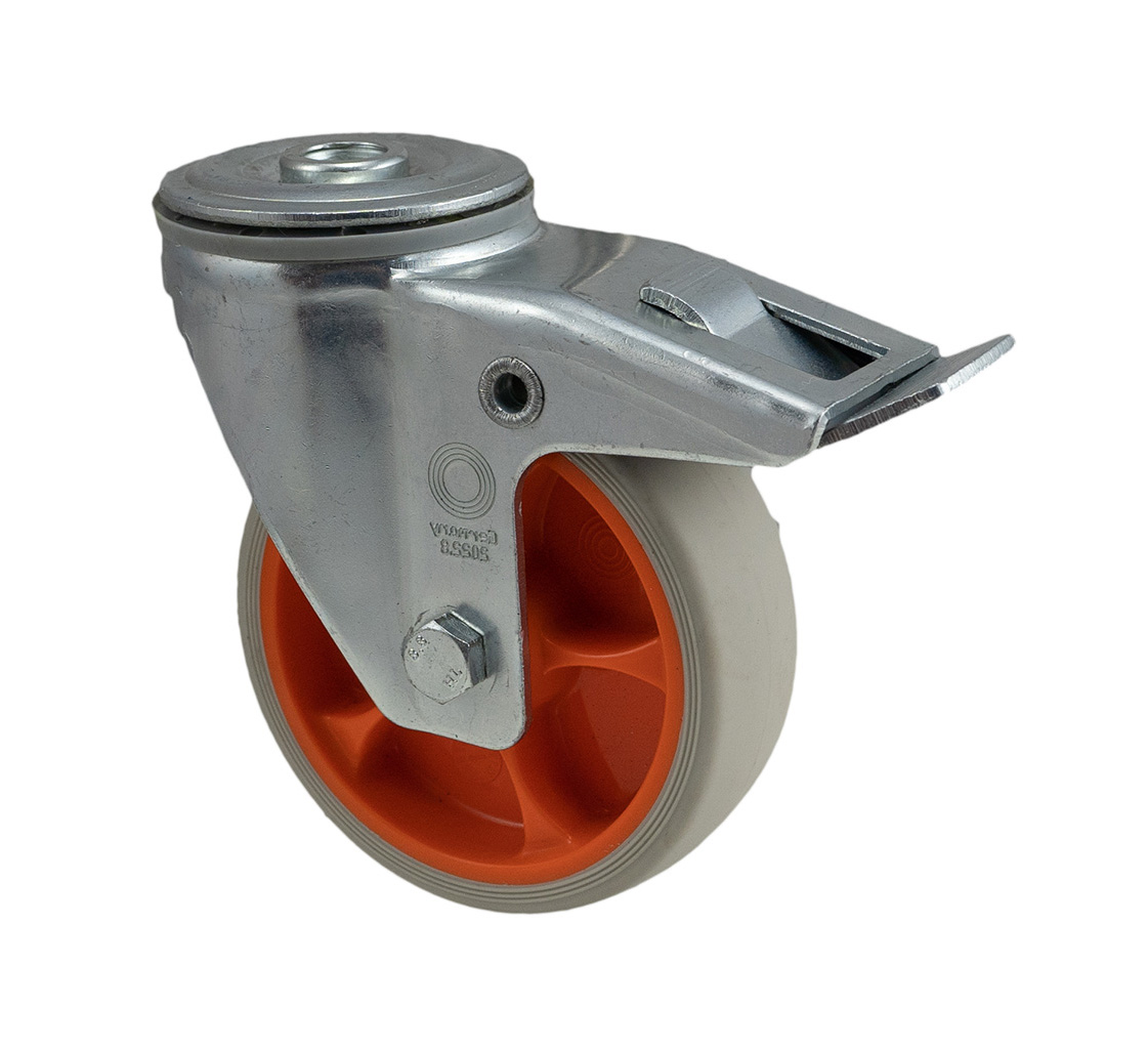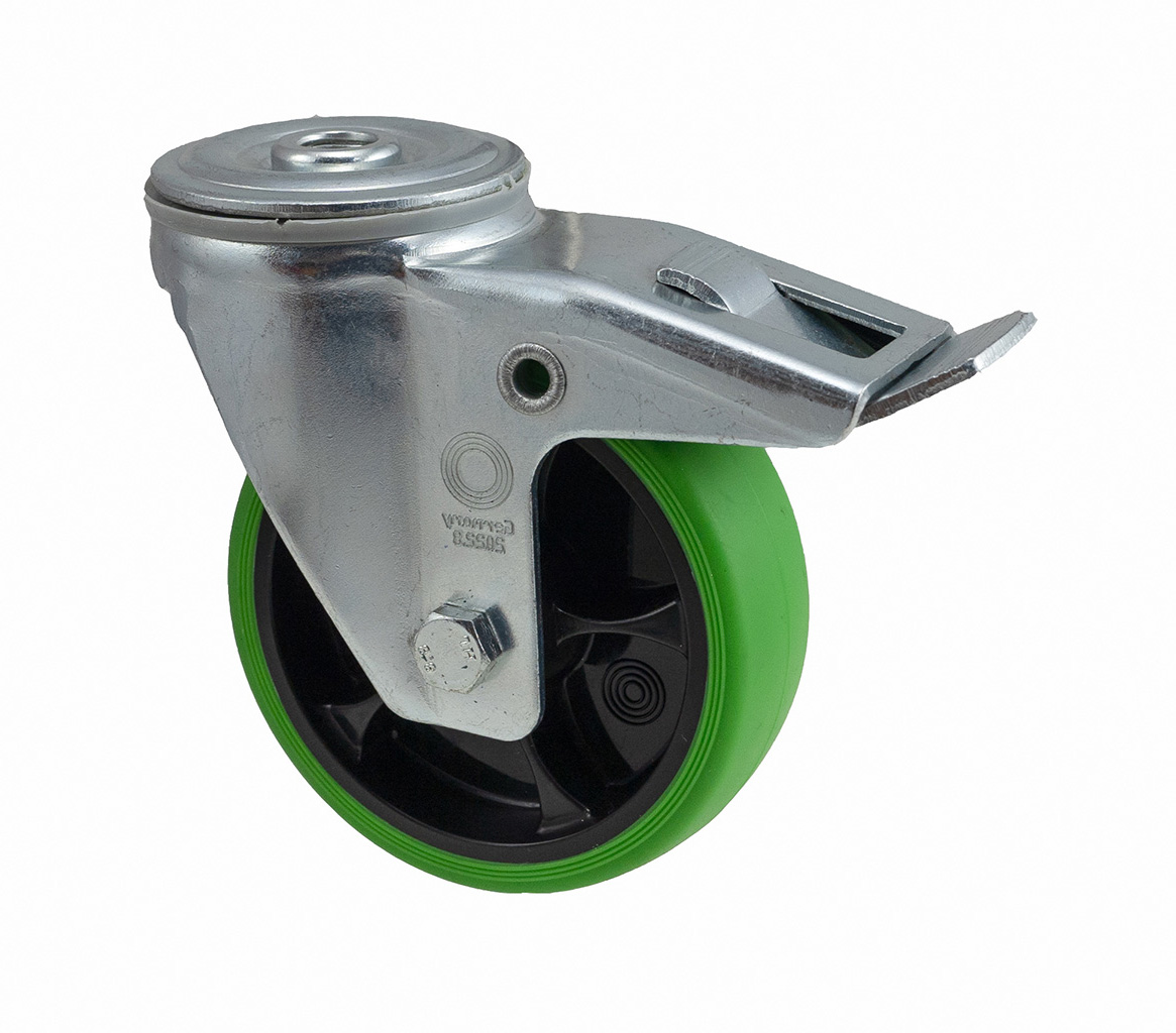 DŮM KOLEČEK » Transportní kola » Transportní kola B44 » Otočné provedení + brzda s uchycením na jeden šroub - jehlové ložisko
