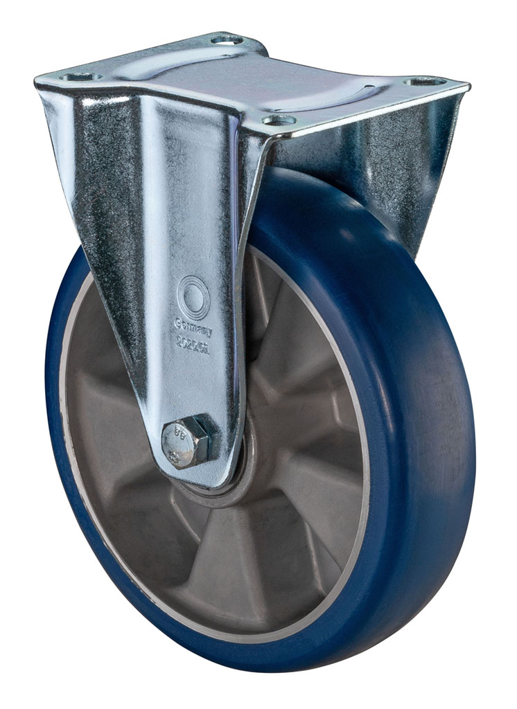 Transportní kolo série B92 s polyuretanovým běhounem v pevné vidlici s uchycením na plotnu na čtyři šrouby