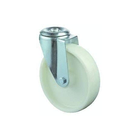 vidlice: ocelový pozinkovaný plech s dvojitým kuličkovým věncem, kolo: bílý polyamid na jehlovém ložisku