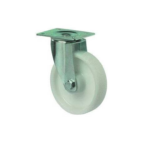 vidlice: ocelový pozinkovaný plech s dvojitým kuličkovým věncem, kolo: bílý polyamid na jehlovém ložisku