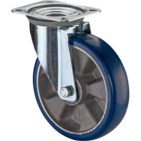Transportní kolo série B92 s polyuretanovým běhounem v otočné vidlici s uchycením na plotnu na čtyři šrouby