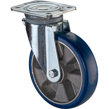 Transportní kolo série B92 s polyuretanovým běhounem v otočné vidlici pro vysoké zatížení s uchycením na plotnu na čtyři šrouby