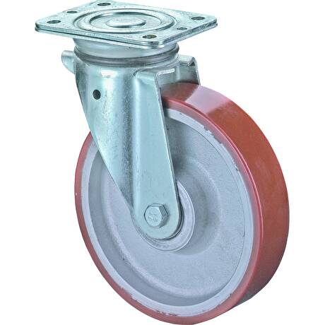Transportní litinové kolo s polyuretanovým běhounem v otočné vidlici pro vysoké zatížení