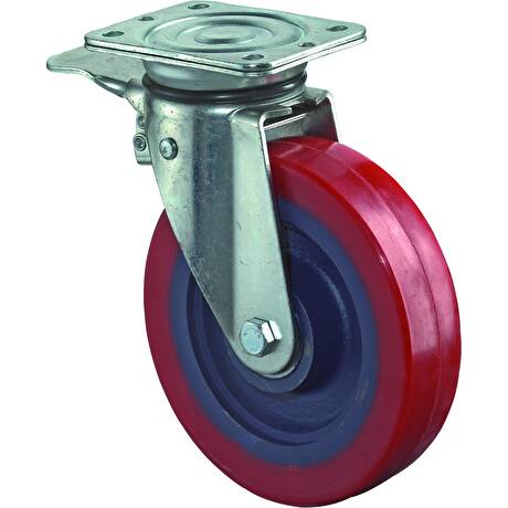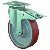 Transportní litinové kolo s polyuretanovým běhounem v otočné vidlici s brzdou pro vysoké zatížení
