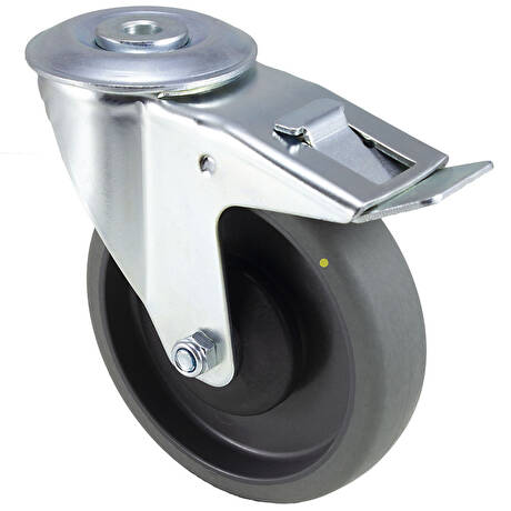 Transportní antistatické kolo s pryžovým běhounem v otočné vidlici s brzdou s uchycením na jeden šroub