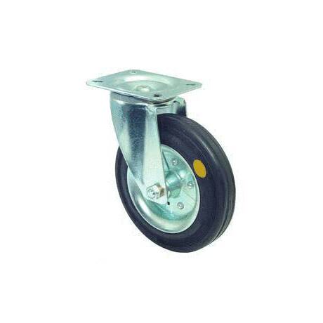 vidlice: ocelový pozinkovaný plech s dvojitým kuličkovým věncem, kolo: plechové s černou nešpinící ANTISTATICKOU gumou na jehlovém ložisku