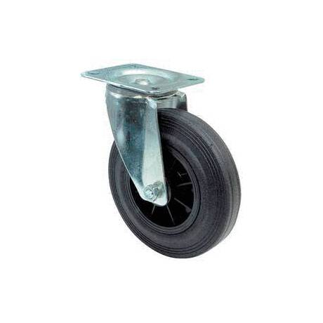 vidlice: ocelový pozinkovaný plech s dvojitým kuličkovým věncem, kolo: plastové s černou gumou na jehlovém ložisku