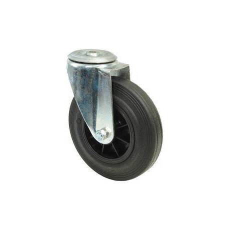 vidlice: ocelový pozinkovaný plech s dvojitým kuličkovým věncem, kolo: plastové s černou gumou na jehlovém ložisku
