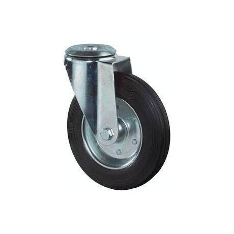 vidlice: ocelový pozinkovaný plech s dvojitým kuličkovým věncem, kolo: plechové s černou gumou na jehlovém ložisku