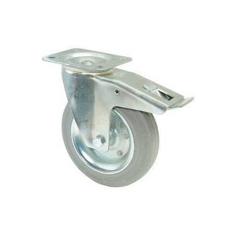 vidlice: ocelový pozinkovaný plech s dvojitým kuličkovým věncem, kolo: plechové s šedou nešpinící gumou na jehlovém ložisku