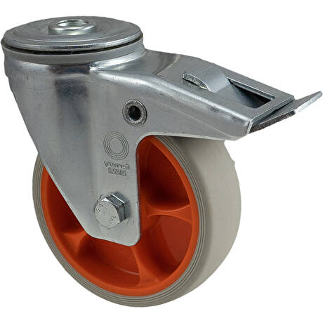 Transportní kolo v otočné vidlici s brzdou s uchycením na jeden šroub