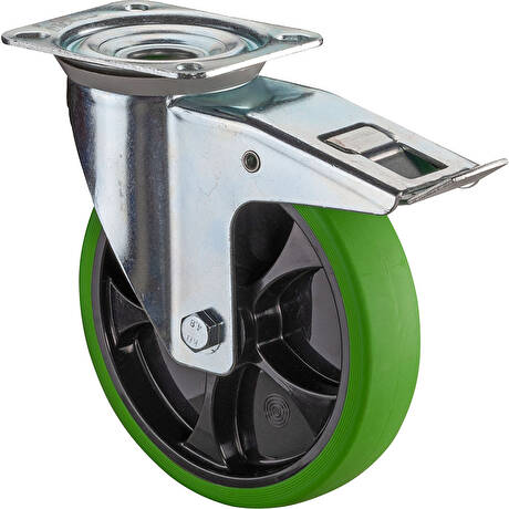 Transportní kolo v otočné vidlici s brzdou s uchycením na plotnu na čtyři šrouby