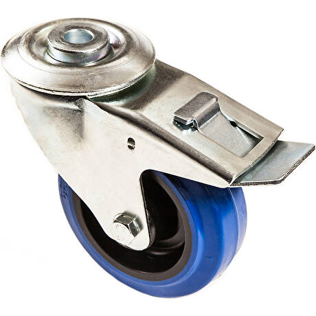 Transportní plastové kolo s pryžovým běhounem v otočné vidlici s brzdou s uchycením na jeden šroub
